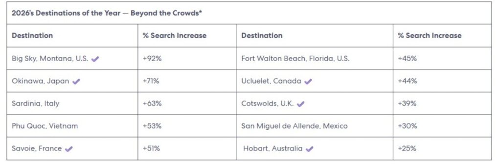 Η Expedia, ένα από τα μεγαλύτερα διαδικτυακά ταξιδιωτικά πρακτορεία στον κόσμο, συγκέντρωσε δεδομένα αναζήτησης σε πραγματικό χρόνο από την εφαρμογή και τον ιστότοπό της και αποκάλυψε τους προορισμούς που σημειώνουν τη μεγαλύτερη άνοδο στο ενδιαφέρον των ταξιδιωτών για το 2026.
